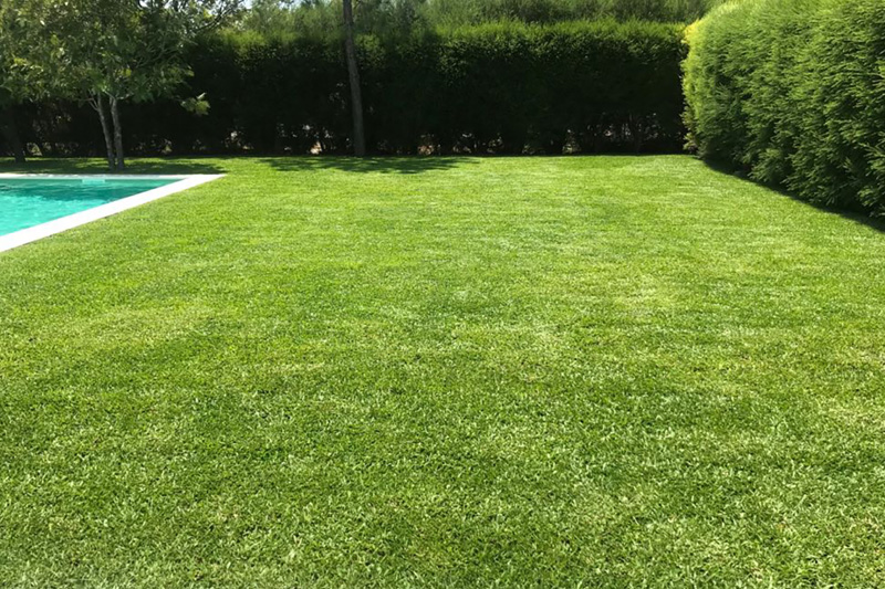 El diseño contempló la creación de un espacio verde funcional y estético, con la colocación de grama bahiana para lograr una superficie resistente, homogénea y de bajo mantenimiento.