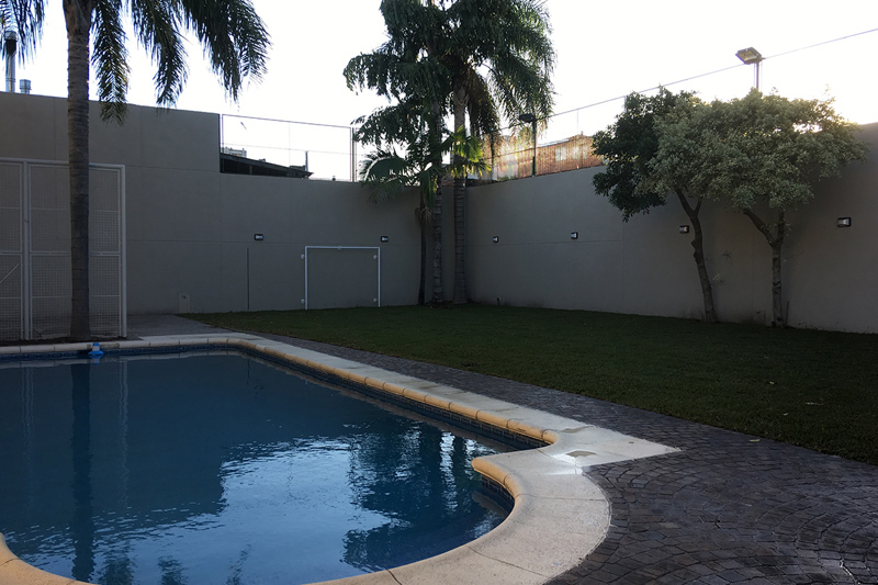 Llevamos a cabo la parquización con grama bahiana, seleccionada por su resistencia, textura y excelente adaptación a espacios residenciales. Para garantizar un mantenimiento eficiente y sostenible, instalamos un sistema de riego automático por aspersión combinado con goteo subterráneo, permitiendo una irrigación precisa según las necesidades de cada sector del jardín.