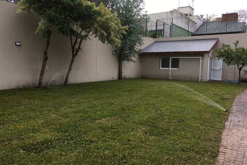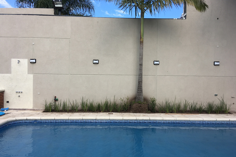 Llevamos a cabo la parquización con grama bahiana, seleccionada por su resistencia, textura y excelente adaptación a espacios residenciales. Para garantizar un mantenimiento eficiente y sostenible, instalamos un sistema de riego automático por aspersión combinado con goteo subterráneo, permitiendo una irrigación precisa según las necesidades de cada sector del jardín.